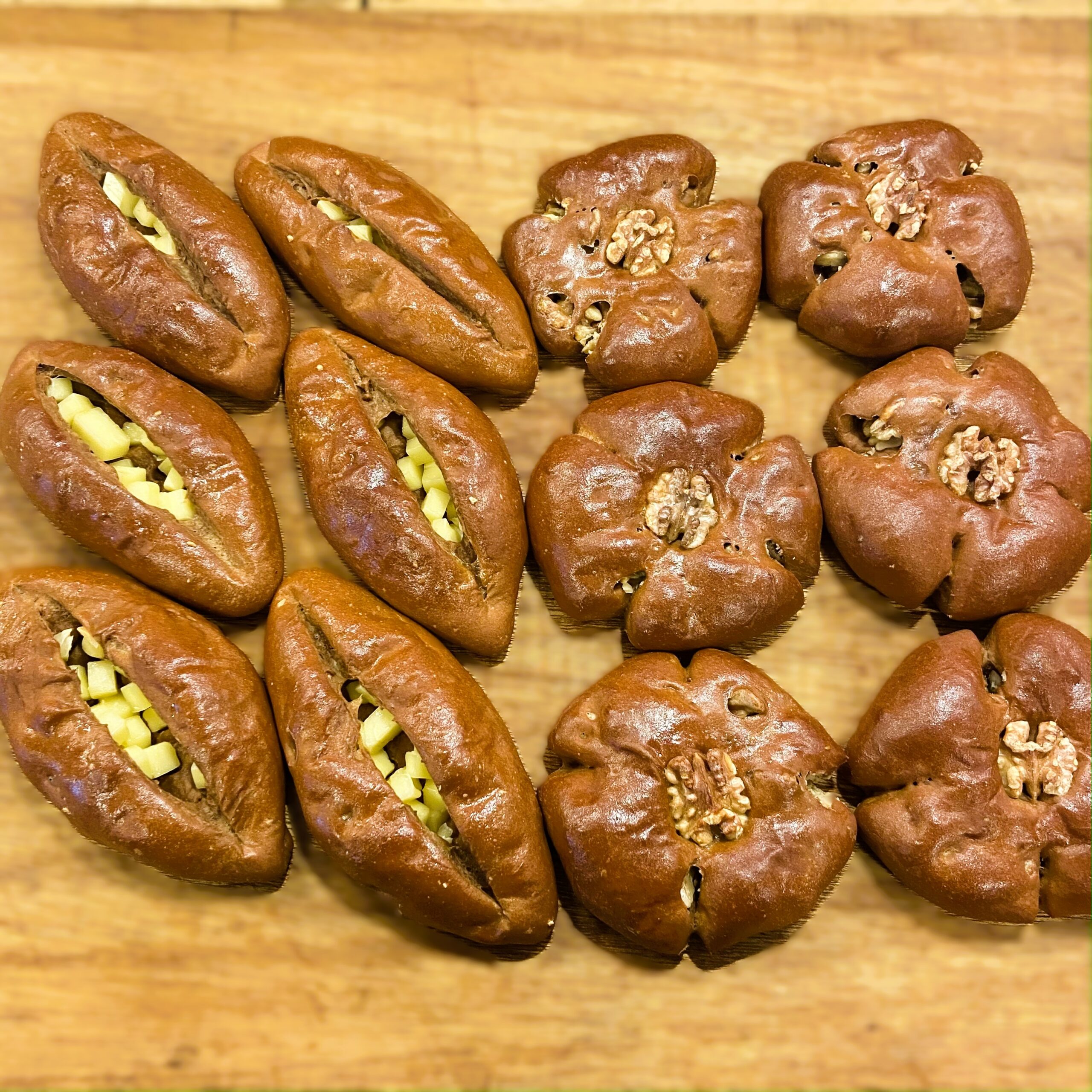 チーズ入りふすまパンと、くるみ入りふすまパンです。